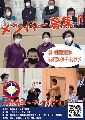 2019年11月30日に鹿児島市心身障害者福祉センター(ゆうあい館)でボッチャの短期講座で講座を受けていた人たちで出来たクラブです。